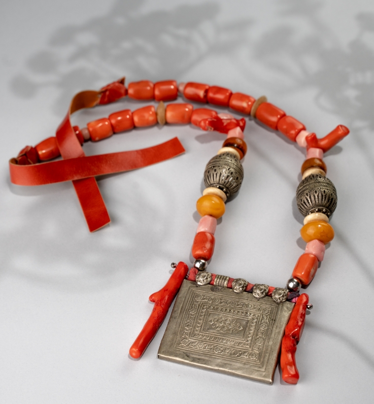 Molto spesso le perle o gli elementi decorativi in metallo utilizzati sono in lega d’argento, bronzo o ottone, scelti per la loro provenienza e soprattutto perché antichi o vintage; non possiamo quindi garantirne la composizione esatta e l’anallergicità. L’eventuale ossidazione nel tempo è un processo naturale e fa parte del loro fascino; per ridare lucentezza, si consiglia una leggera pulizia con un panno in cotone o microfibra, del tipo che si utilizza per gli occhiali.